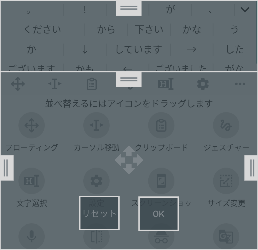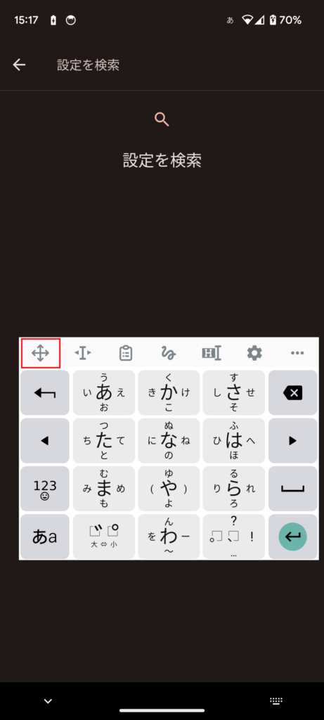 | フローティング | アイコンをドラッグしてキーボードを移動することができます |